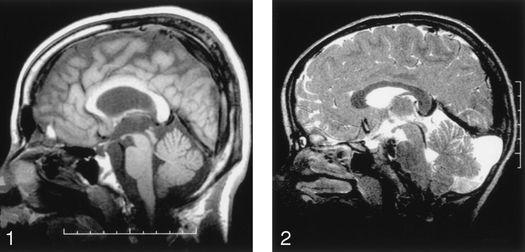 - MRIなどで小脳・特に虫部(vermis)あるいは小脳萎縮の所見を確認することがあります。 AJNR